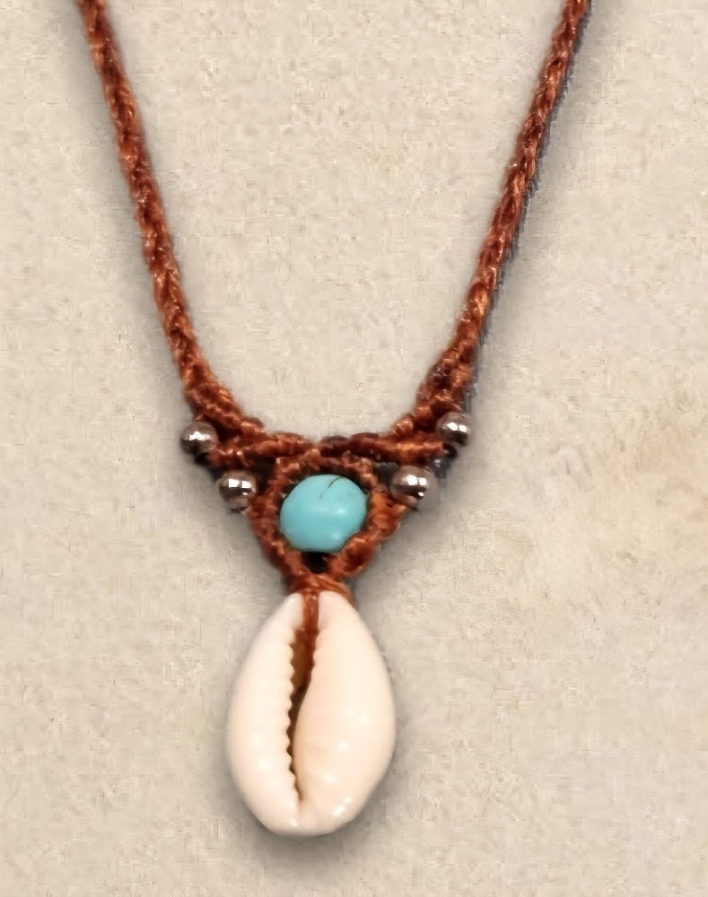 Turquoise and cowrie shell micro macrame necklace ✨️